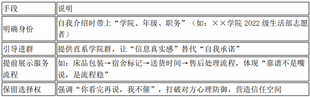 面对即将入学的大学新生,床上用品作为入学“第一需求”,市场广阔但竞争激烈。如何在众多“推销者”中脱颖而出,赢得信任、引导下单、建立长期联系,是每个迎新志愿者、勤工俭学者必须掌握的能力。