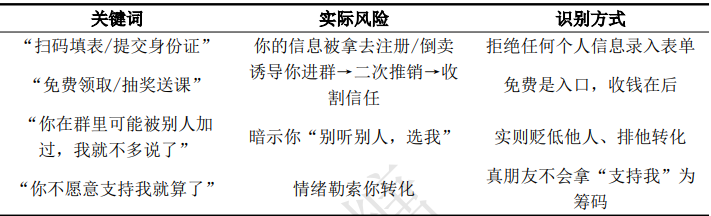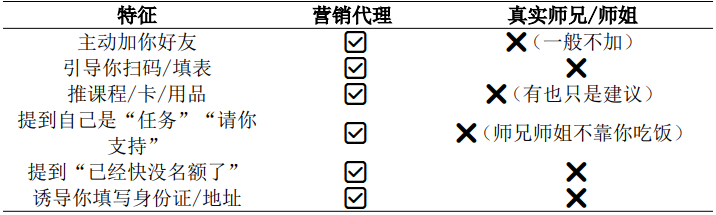 重点提醒:所有这些“关怀式推销”背后都藏着一个目标——让你掏钱、让他们拿提成。很多甚至是外包团队/校园代理伪装成“你们的学长学姐”。
