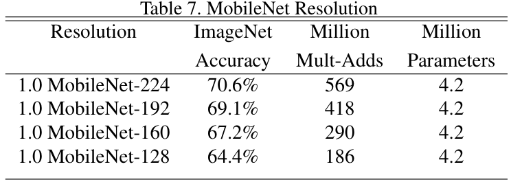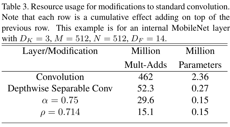 从上到下依次是传统卷积、深度可分离卷积、αα=0.75的情况、ρρ=0.714的情况
