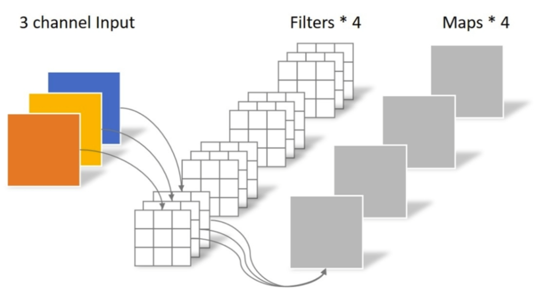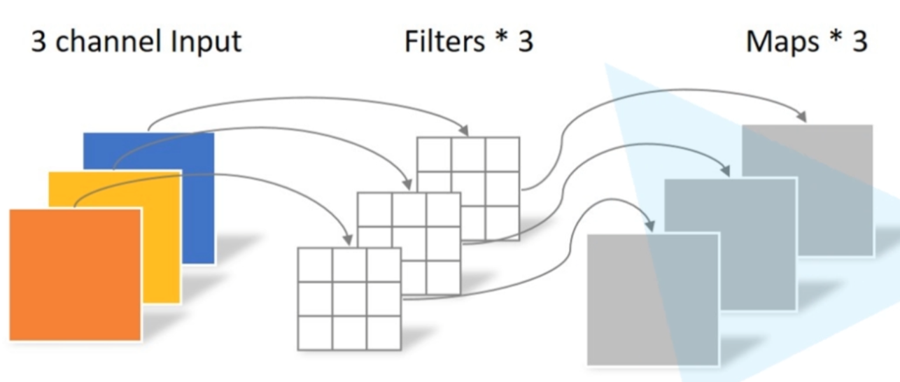 从图中我们看到,一个 3x3 卷积核只负责一个 channel ,一共 input_channel 个卷积核