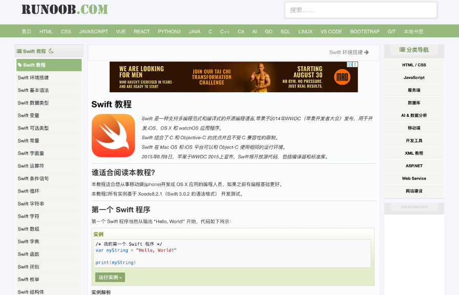 https://www.runoob.com/swift/swift-tutorial.html 简单了解一下和swift 的相关知识。